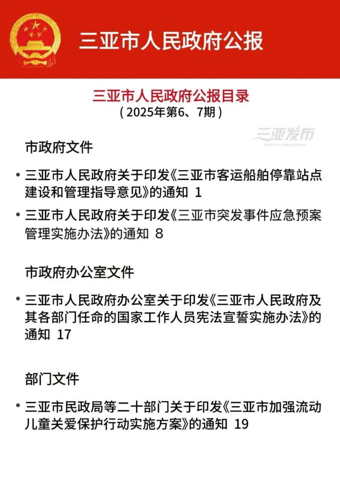原标题:《三亚市人民政府公报2025年第6、7期》