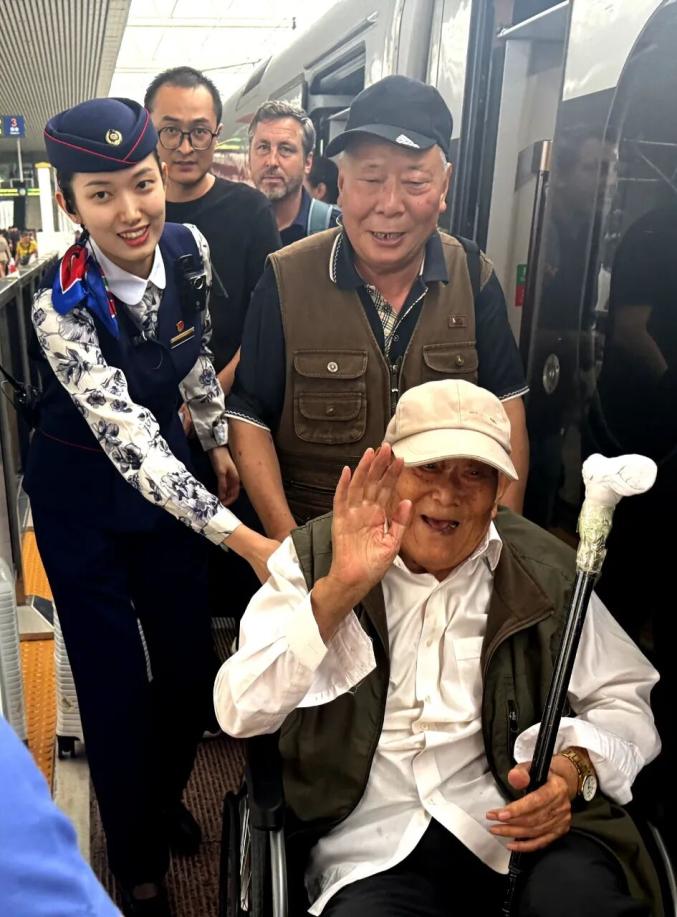 分别时,他们连声道谢。这位百岁老人也对乘务员的服务赞不绝口:“咱河南的姑娘就是好,服务也好,必须点个大大的赞!”