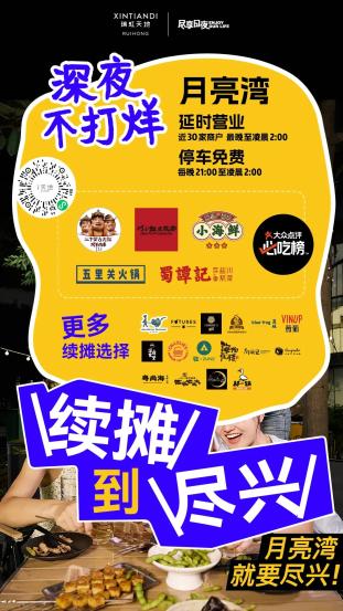 演唱会结束后还想继续狂欢?还在为深夜聚会找不到合适的地方而发愁?瑞虹天地月亮湾推出「续摊到深夜」活动,让你的夜生活选择困难症统统退散!