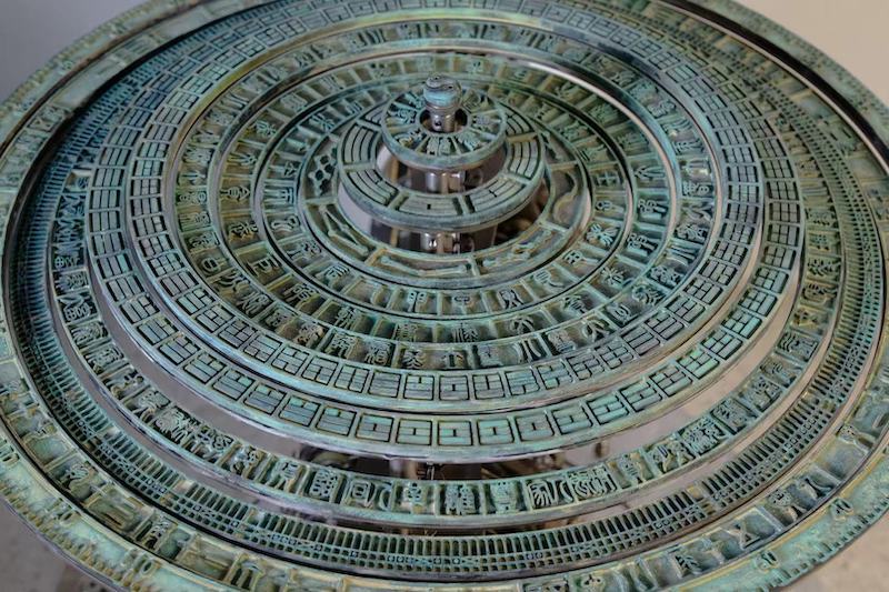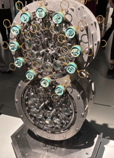 在C·PARK海粟文化广场D栋3层展出的《滴动仪》以中国传统“罗盘”为灵感,与水滴散开的涟漪相融合。艺术家聂士昌解释道:“罗盘的中心是太极符号,一圈圈向外扩散出八卦、九星、二十四节气、六十四卦等,就像水滴一圈圈扩散的涟漪。”他还表示,《六十仪》表达了时间无穷无尽又周而复始的本质,《滴动仪》则体现了古典文化中“一生二、二生三、三生万物”的思想。