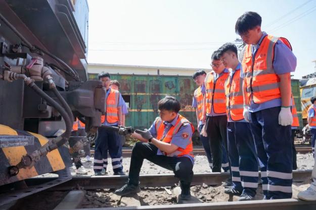 他们脚步不停,眼观八方,这抹“靛色”在股道间忙碌奔走,为列车运行精心“穿针引线”。他们严格依照作业标准,精准、利落的完成连结车辆、确认信号等工作,不放过每一个关键指令。他们坚守责任,凭借娴熟的业务能力和专注的工作态度,为保障运输畅通筑牢坚实基础。