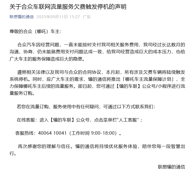更糟糕的是,车机流量要车主自己买,否则会断网。车机网络原本是车企统一购买,哪吒汽车停止续费,车主就无法使用车载地图导航、远程控车等服务了。