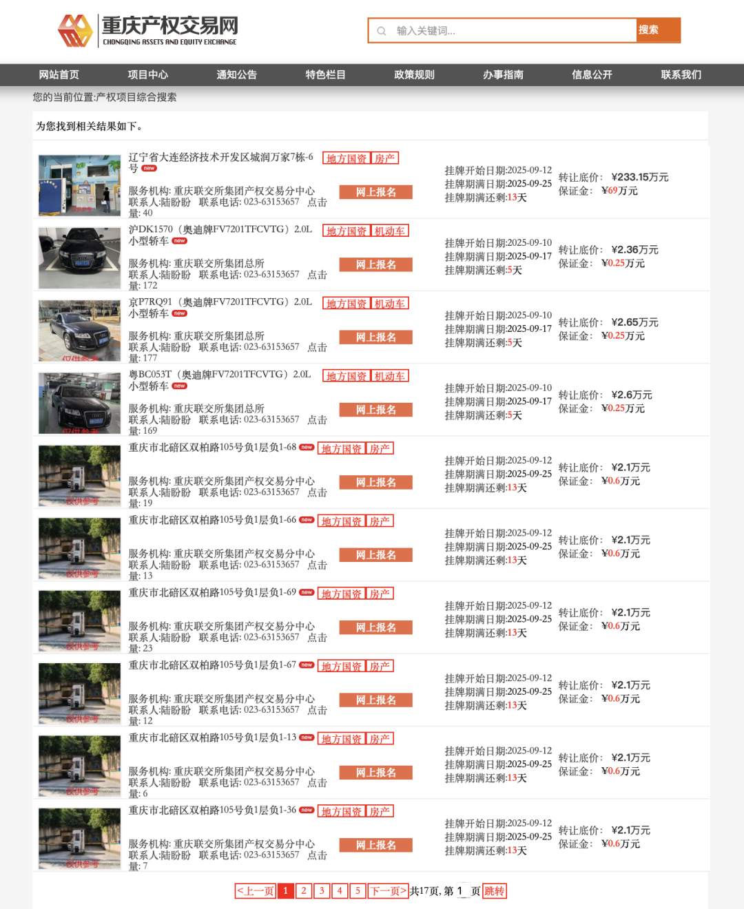重庆产权交易网显示,9月10日至12日西南证券新挂牌超70个资产转让项目。