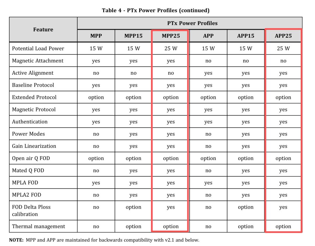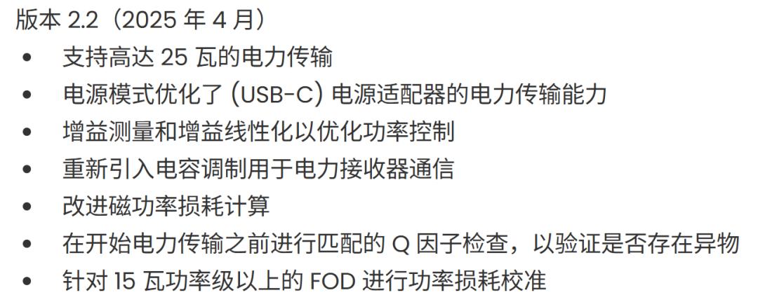 今年四月份,WPC(无线充电联盟)发布了一项新的无线充电标准“Qi2.2”,支持最高25W的功率。