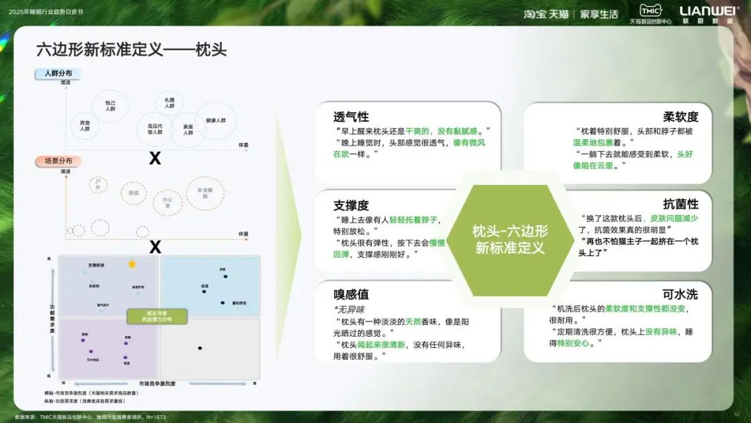 三是设计哲学转型。家纺设计正从单一功能向多元化体验转变。无论是内芯还是套件,都有了新的标准。例如,《白皮书》对枕头的新标准包括透气性、支撑度、可水洗性、抗菌性、柔软度和嗅感值等多个方面。
