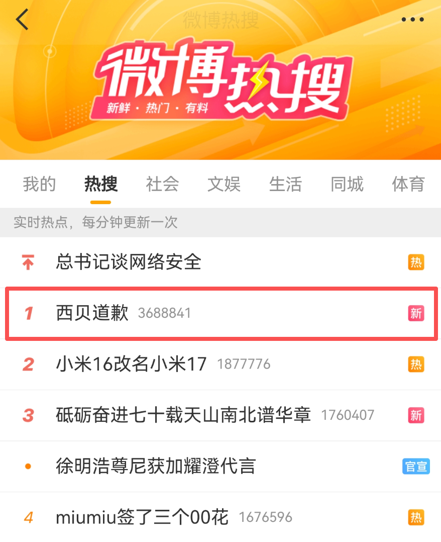 9月15日,西贝方面发布致歉信。#西贝道歉#的词条迅速登上微博热搜榜第一名。