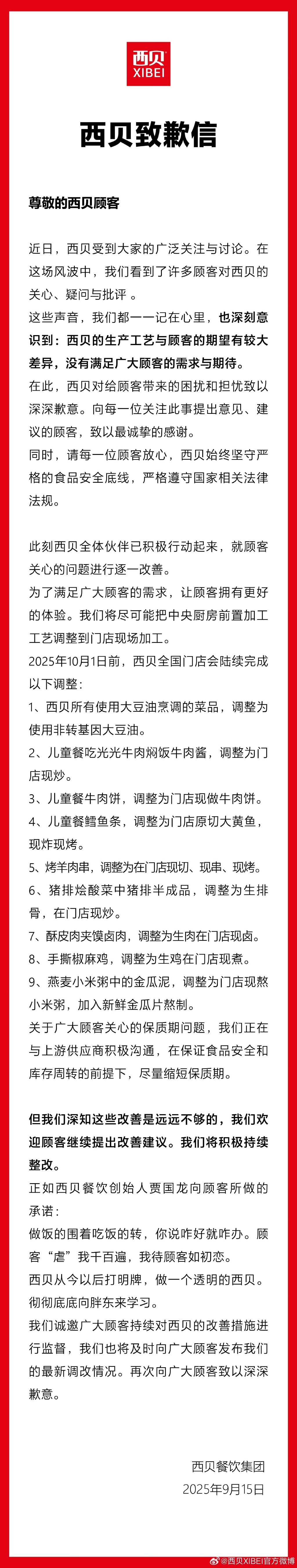 或许是真切感受到了舆论对经营的巨大冲击,西贝选择了书面道歉。
