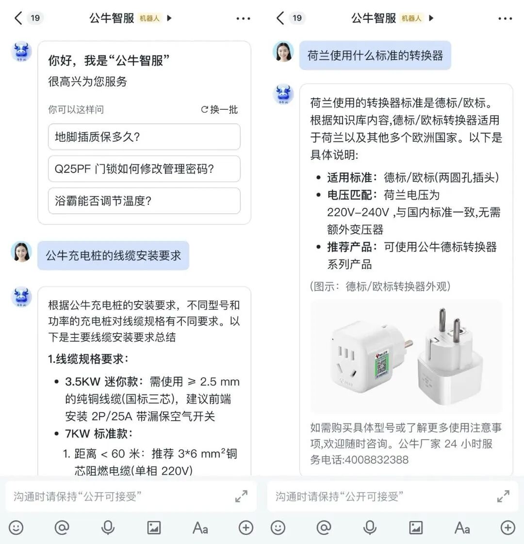 2024年,插座巨头公牛集团上线飞书,并在三个月内基于飞书aily自建AI客服机器人“公牛智服”,客服一线都在使用,将客服响应时间从半小时缩短到1分钟,新人培训周期从一个月缩短到一周。