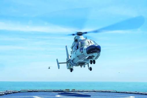 日前,海军某部开展了直升机着舰训练。