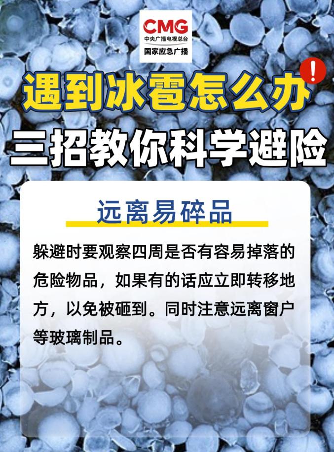 冰雹威力不可小觑,要及时关注最新预警信息,收到冰雹预警后应尽量避免外出,遭遇冰雹应在确保安全的情况下避险。