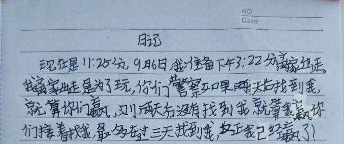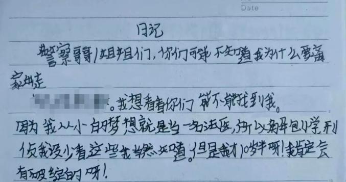 当一本摊开的日记本进入民警视线时,案件很快迎来了转机。日记中,小胡写道:“警察哥哥/姐姐们,你们可能不知道,我为什么要离家出走.....我想看看你们能不能找到我!”字里行间,小胡流露出对刑侦破案的痴迷,甚至还精心设计了“48小时破案时限”的挑战书。