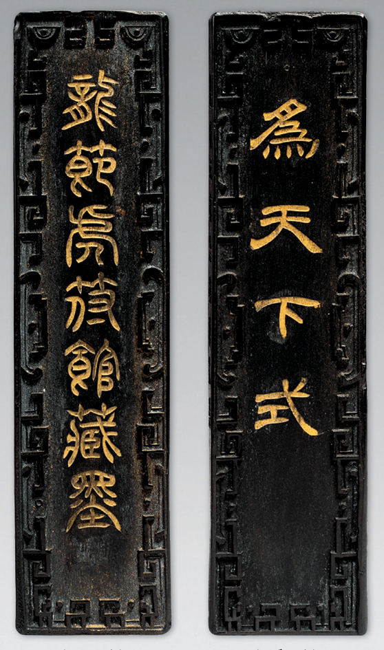 道光年间女诗人赵棻以其斋号定制的“滤月轩珍藏”;清末爱国名臣、著名金石家吴大澂为其收藏虎符印信的斋馆定制的“龙节虎符馆藏墨”等,展现了古时文房四宝除了实用书写功能外,也是文人书屋陈设、自怡赏玩的雅物。