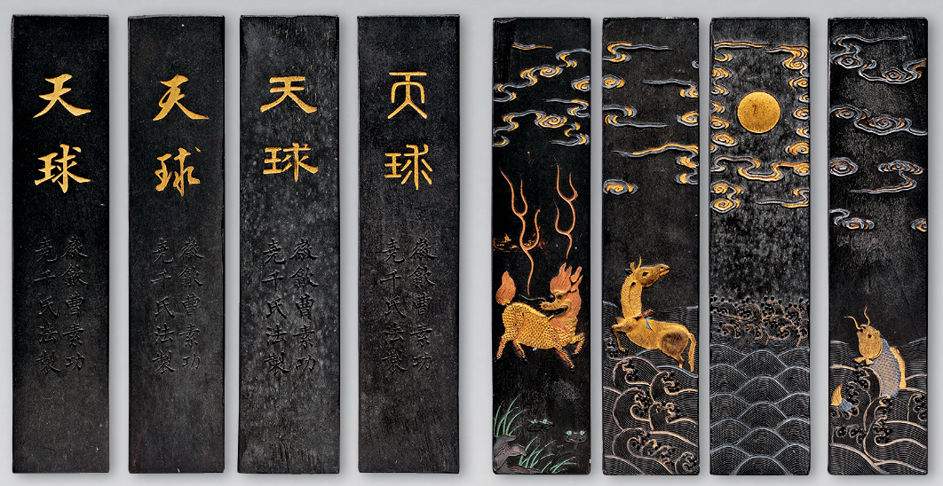 展品集中了一大批同治光绪年间文人定制的自用墨。他们根据自己书画的需求,自行设计定稿,以此彰显个人艺术特色。