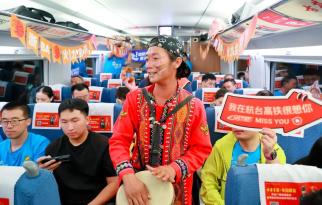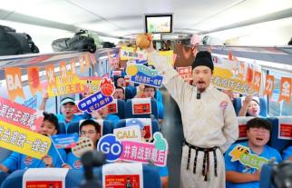 走进车厢,印着赛事应援口号的手牌、挂旗、窗贴等随处可见,球迷们热烈讨论赛事看点,脸上满是期待与兴奋。车厢内还安排了表演互动等特色节目,让球迷在旅途中既能感受体育热情,又能体验沿线文旅魅力。