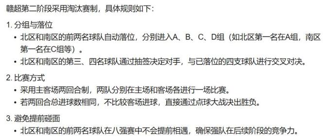 按照第二阶段四分之一决赛的规则,九江、上饶、宜春、赣州这四支队伍各自落定位置,而南昌、景德镇、抚州、新余四支队伍则要进行抽签。四分之一决赛将采取主客场两回合淘汰制,只比较各自的进球总数,不考虑客场进球情况。若出现平局,则立即进行点球决胜。
