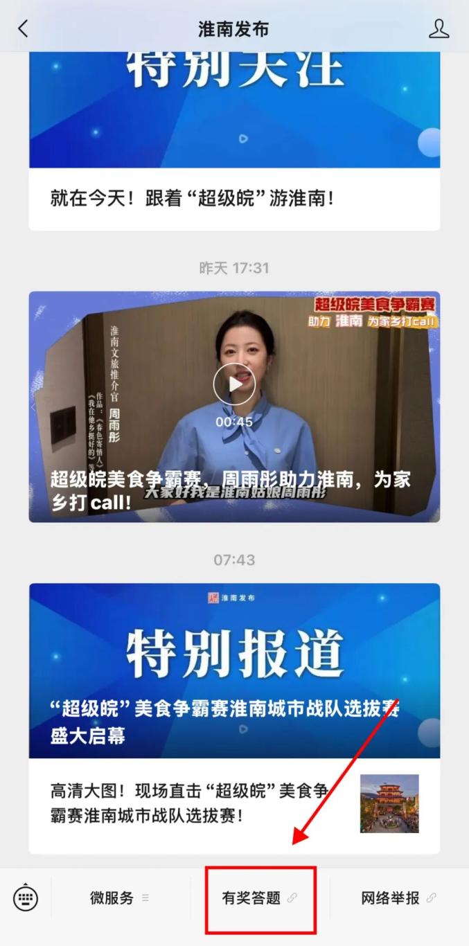 关注“淮南发布”微信公众号,点击“有奖答题”参与。
