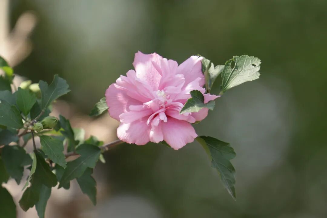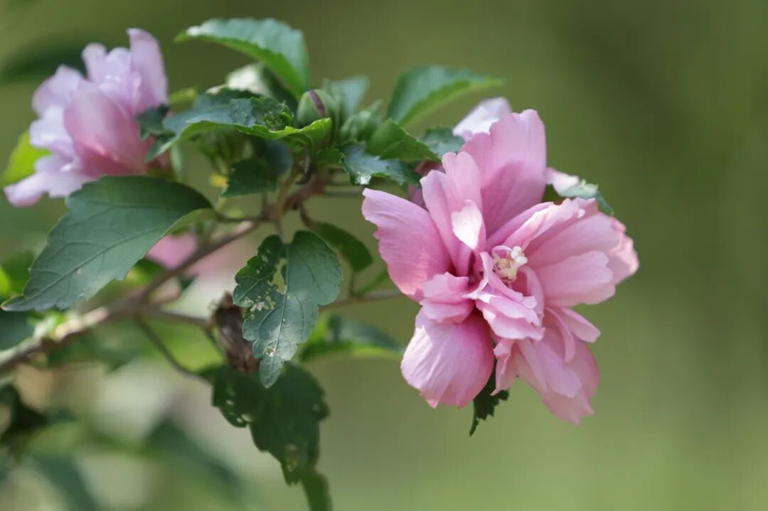 木槿花不像牡丹那样倾国倾城,却以它独有的温柔,书写着秋日的诗行。它花开花合,有规律地绽放与闭合,每一次闭拢并非凋零,而是为了下一次更绚烂的开放。