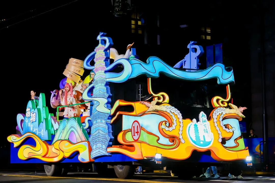 除此之外,花车上还有科幻机器人热情劲舞,装扮成经典动漫角色的二次元Coser盛装登场,与车上的动漫IP形象相互映衬,营造出一种奇幻又充满活力的氛围。