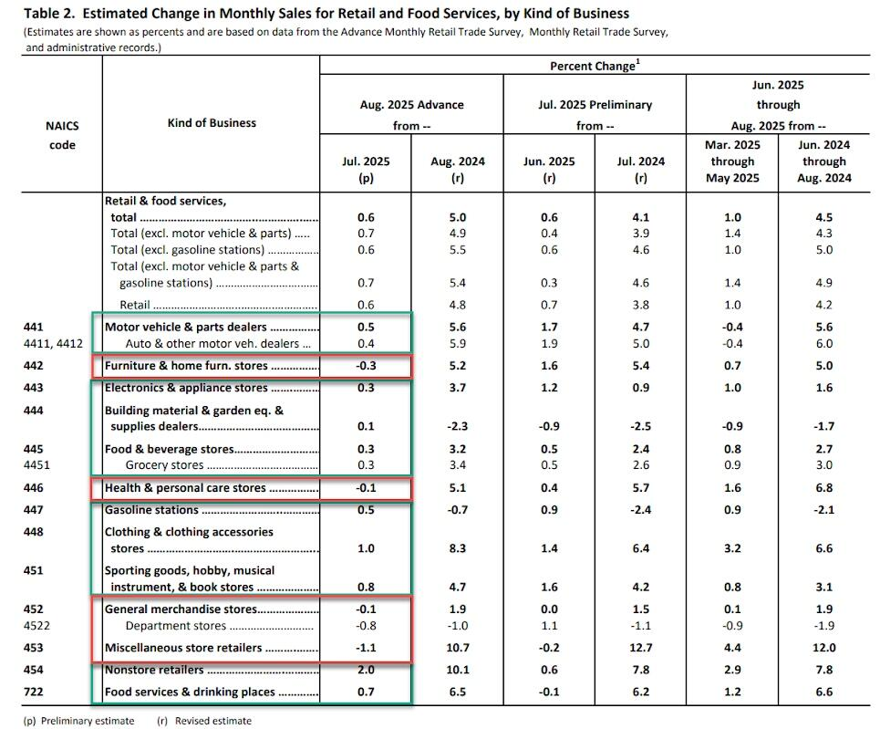 8月零售增长具有广泛性,13个主要类别中有9个实现增长。