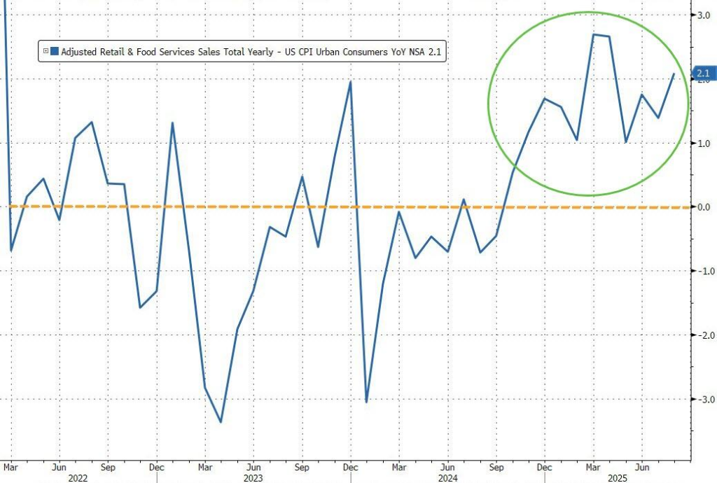 8月美国消费者支出表现强劲,超出预期,零售销售数据连续第三个月保持增长。而且,经通胀调整后的实际零售销售同比增长2.1%,连续11个月实现正增长。