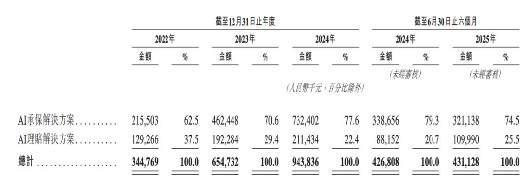 财务方面,于2022年度、2023年度、2024年度以及截至2025年6月30日止六个月,暖哇科技实现收入分别约为3.45亿元、6.55亿元、9.44亿元、4.31亿元,呈现出显著的增长趋势;同期,毛利分别为1.99亿元、3.82亿元、4.7亿元、2.2亿元;期内亏损分别为2.23亿元、2.4亿元、1.55亿元、9988万元。其中,AI承保解决方案贡献了超7成的营收。