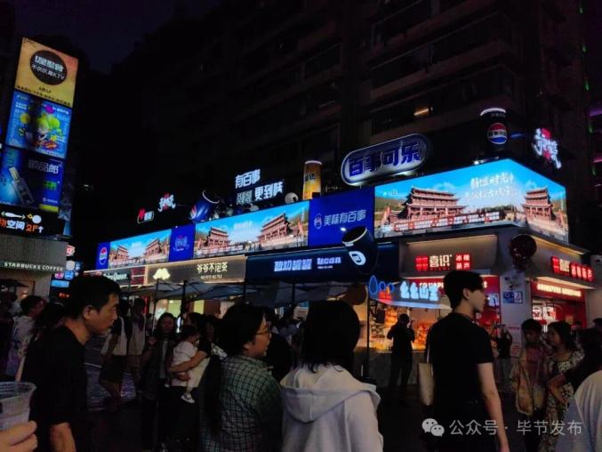 在贵阳青云市集,核心C位的户外LED屏也有了毕节元素,持续4周三屏同播,预计日均覆盖20万市民/游客。在青云市集逛吃的你,是否也被毕节吸引了呢?
