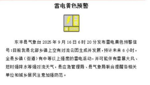 据东丰气象台预报,9月16日我县将出现降雨天气。