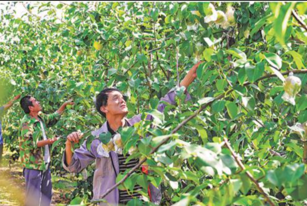 农户在养护青梨。