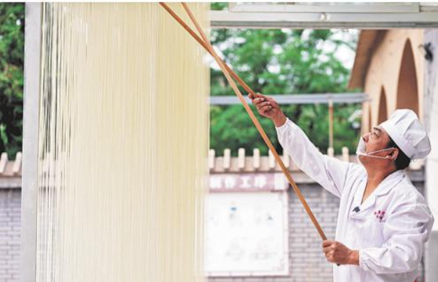 晾晒手工挂面。乔晔 摄