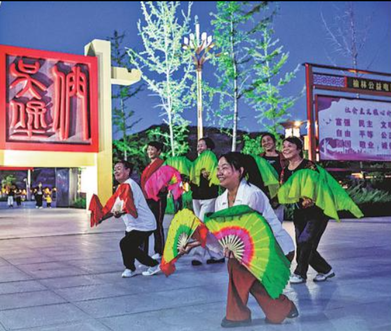 当地居民在文化广场上跳舞。