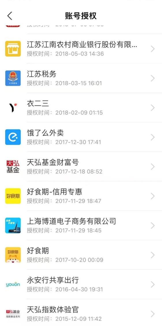 有人体验发现,自己不知不觉授权了121项,最早是2015年底授权的,授权内容包括姓名、手机号及证件号码等敏感信息;最近的是今年8月底授权的,授权内容为获取姓名、身份证号等身份信息。百余项授权中,部分授权内容是获取昵称和头像,但也有不少涉及姓名、身份证号、手机号码等敏感信息,甚至很多软件、平台毫无印象,都不知道是干什么用的。