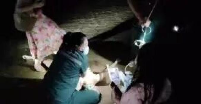 当时,溺水的男性游客躺在沙滩上,急救人员迅速为他做心肺复苏。然而,经过大概一个小时的努力,男子仍无生命体征,随后被众人抬上救护车送往医院急救。