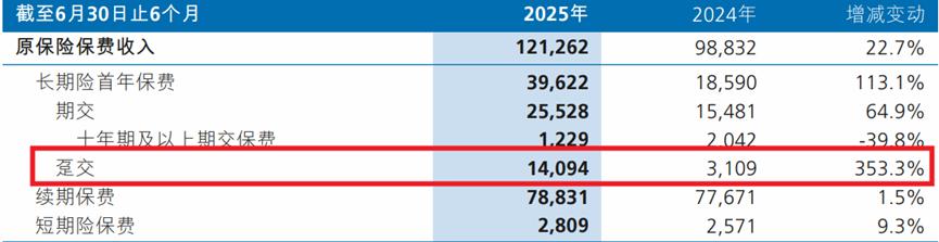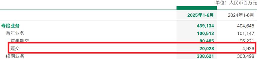 新华保险的半年报也呈现类似情况。资事堂注意到,新华保险2025年上半年的长期险趸交金额达140.94亿元,相比去年的31.09亿元,同样实现超三倍增长。