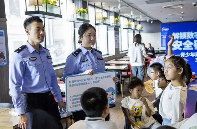 14时,主题餐厅举办“解密数字世界安全密码”青少年网络安全沙龙活动。网安民警结合真实案例,以通俗易懂的语言为青少年讲解网络病毒辨别、个人信息保护和网络诈骗识别方法。