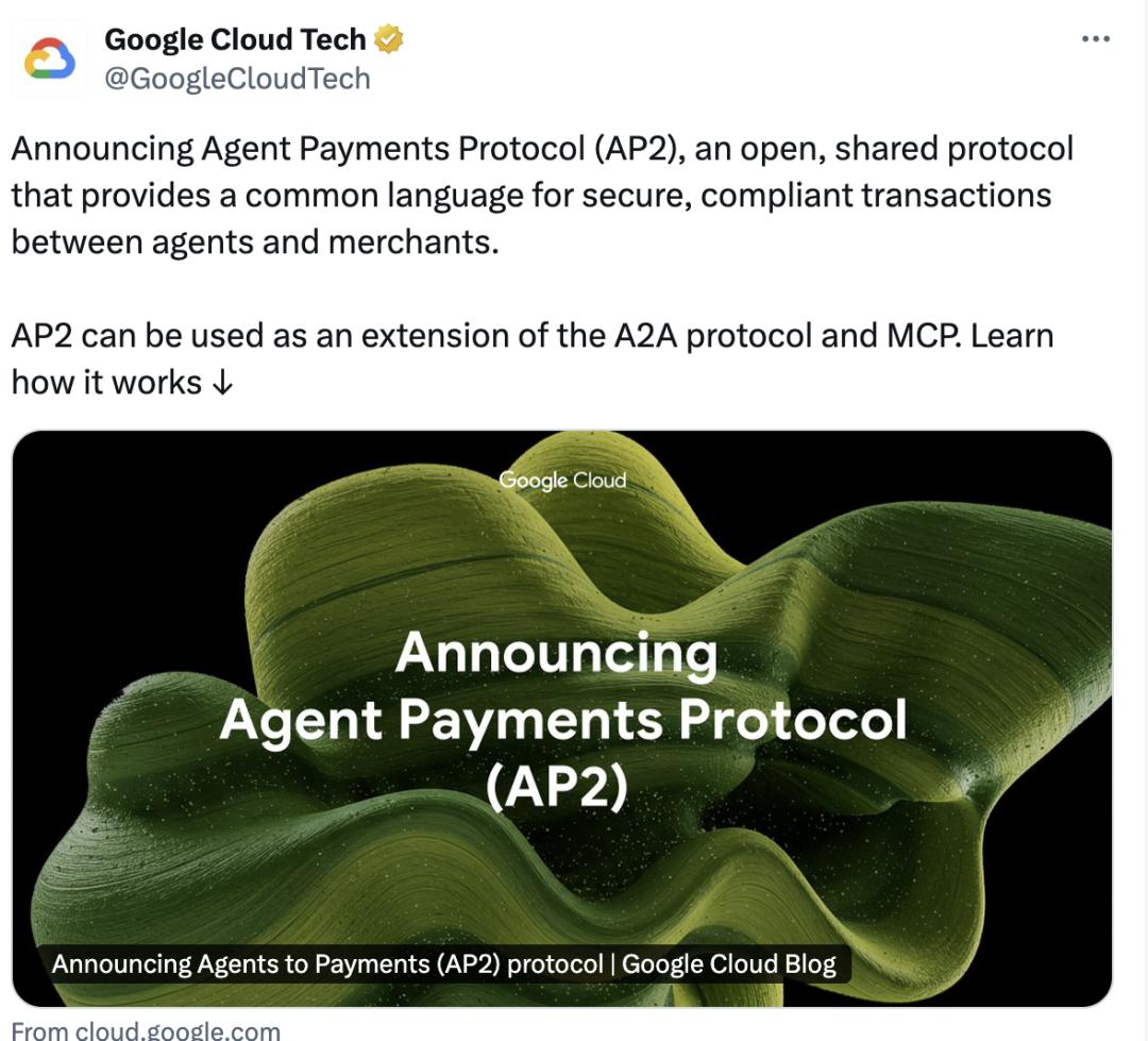 https://cloud.google.com/blog/products/ai-machine-learning/announcing-agents-to-payments-ap2-protocol?utm_source=twitter&utm_medium=unpaidsoc&utm_campaign=fy25q3-googlecloud-blog-ai-in_feed-no-brand-global&utm_content=-&utm_term=-&linkId=16809590