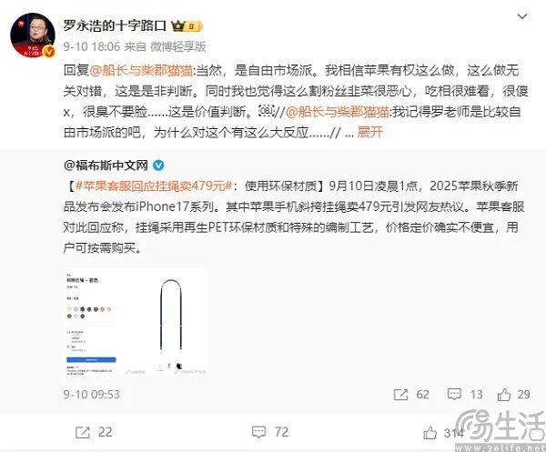 从配备高刷屏的iPhone 17、“史上最薄”的iPhone Air到影像系统再度进化的iPhone 17 Pro版本,历经多次迭代,苹果这次可谓是“把牙膏挤爆”。不过,作为全球知名手机品牌,每一代iPhone发布总会伴随非议。前“苹果母公司CEO”罗永浩就在微博上对iPhone的斜跨挂绳“开炮”,称“这么割粉丝韭菜很恶心,吃相很难看”。