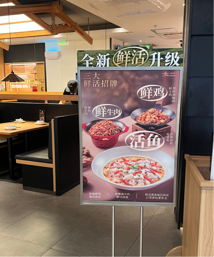 宣传导致认知偏差。太二“活鱼”宣传吸引眼球,但未明确“是否点杀”,吸引追求新鲜食材的顾客,也规避了高效现杀难题。
