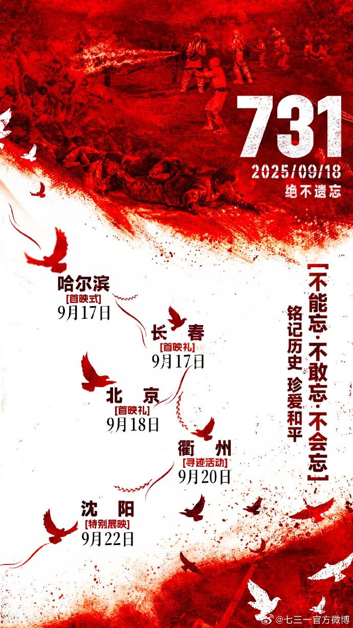 9月17日,重大历史题材影片《731》在哈尔滨市哈东万达影城IMAX GT影厅举行全球首映式。
