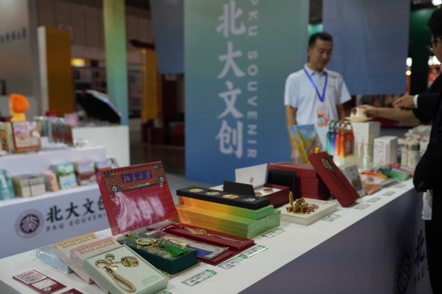在特色馆内,能看到许多云南高校的文创展位,像云南大学、云南师范大学等,各学校的展位设计均融合了学校历史故事、文化符号,吸引了不少游客驻足。