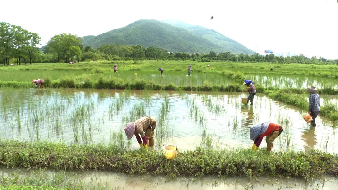 岛西种植基地副主管余泽许表示:“主要是清理铁线草,这种草在田里生长速度快,施肥后会优先吸收养分,对马蹄生长有影响。我们组织了10多名工人清理了半个月,还需要10多天整个基地才能清理完毕。”