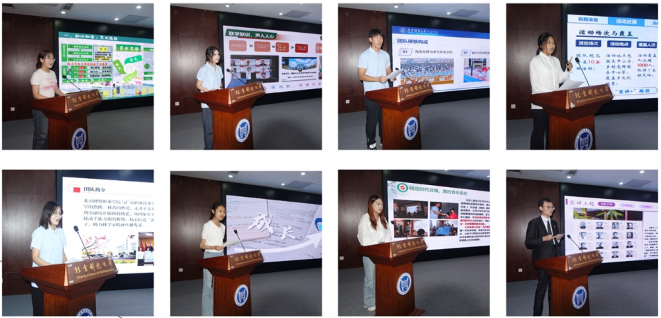 来自八所高校的宣讲团代表进行了宣讲活动创新做法和感人故事的交流分享。北京中医药大学“青思践悟”学伤寒宣讲团的王泽桐同学,分享了团队用35天走过5000里路,深入领会刘渡舟、王庆国“大先生”精神,并以实际行动践行青年担当的故事;北京科技大学长青 - 青成支教实践团的李思语同学,表达了借助交流平台与其他大学生共同推动“大学生科普支教联盟”建设的期望;北京工商大学“味来π”宣讲团的胡静函同学,通过生动讲述让大家感受到“大先生”与大众距离并不遥远;北京财贸职业学院靠谱青年宣讲团的樊亚棋同学,介绍了团队依托“双单位 + 双导师”指导机制提升宣讲针对性和专业度的实践经验;北京联合大学启智润心宣讲团的徐铭泽同学,讲述了团队希望与更多科普资源平台合作,丰富科学家故事案例库,打造科普宣讲品牌的规划;北京理工大学“延河青澜·马理先锋”科学家精神宣讲团的卜兆晶同学,介绍了团队将马克思主义理论与科学家精神相结合的联学联讲模式;中国石油大学(北京)“聚光琼州支教+”实践团的华佳同学,总结了“主题引领是灵魂,实践创新是关键,精心准备是基础,真情投入是纽带”的心得体会。