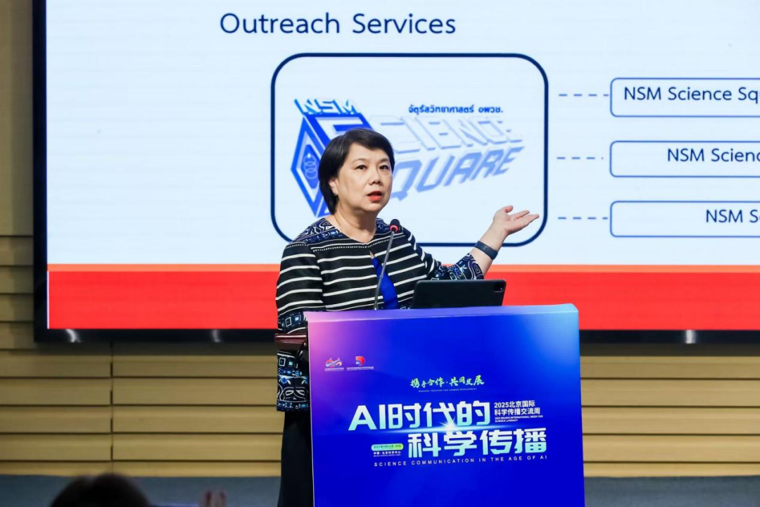 主旨报告环节由中国科技新闻学会副理事长、北京科技大学科技与文明研究中心主任任福君主持。波尔图大学(葡萄牙)自然历史与科学博物馆传播部主任、生物多样性展厅——科学生命中心馆长、欧洲科学中心和博物馆网络(ECSITE)主席玛丽亚·若昂·吉马良斯·丰塞卡,陕西师范大学教育学部原院长、“曲江学者”教授、国际科学教育学会理事会前主席(ICASE)张宝辉,泰国国家科技馆副馆长、亚太科技中心协会(ASPAC)副主席盖尼加·陈,中国传媒大学教授、博士生导师、欧洲传媒研究中心主任、国际媒介与传播研究学会(IAMCR)新闻传播教育与研究(JRE)分会主席赵如涵作主旨报告。