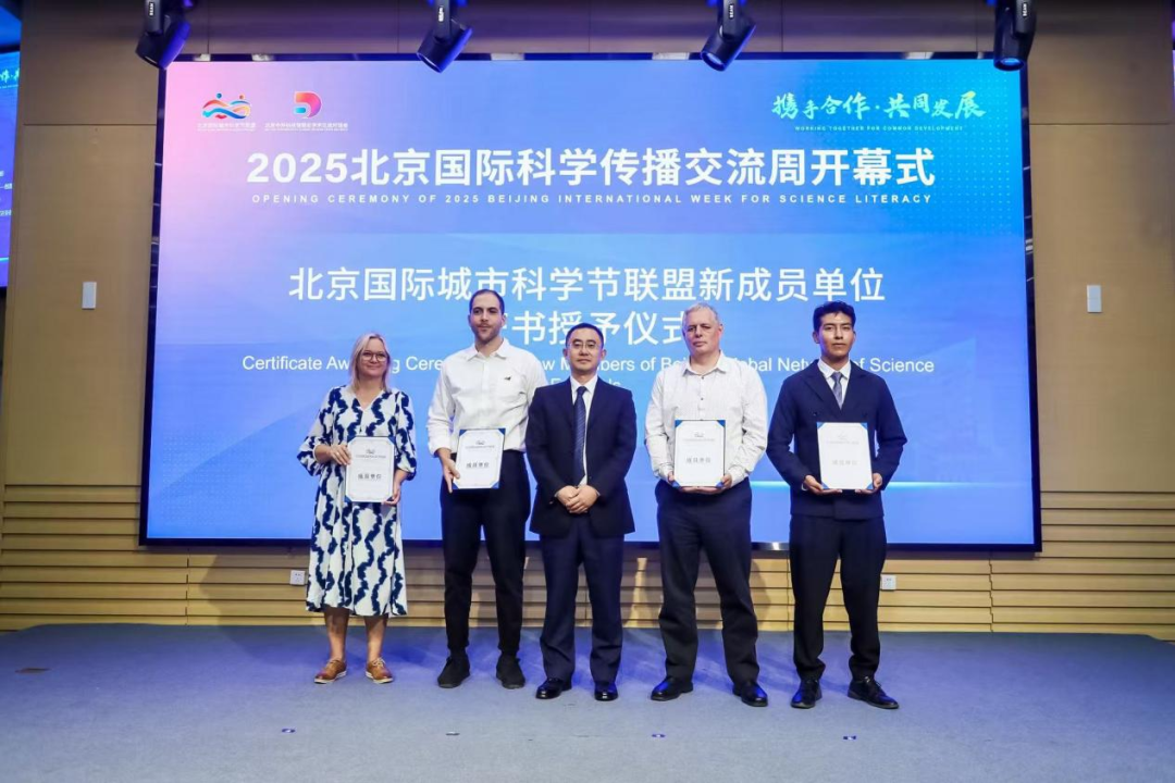 北京市科学技术协会副主席、北京科学中心(北京青少年科技中心)主任、北京国际城市科学节联盟秘书处总干事苏国民为安第斯路国际科学技术组织、格罗布尼克之城——创造力与科学传播中心(克罗地亚)、科萨纳古希腊科技博物馆(希腊)、特隆赫姆科学中心(挪威)、意大利国家达芬奇科学技术博物馆等北京国际城市科学节联盟新成员单位颁发证书。