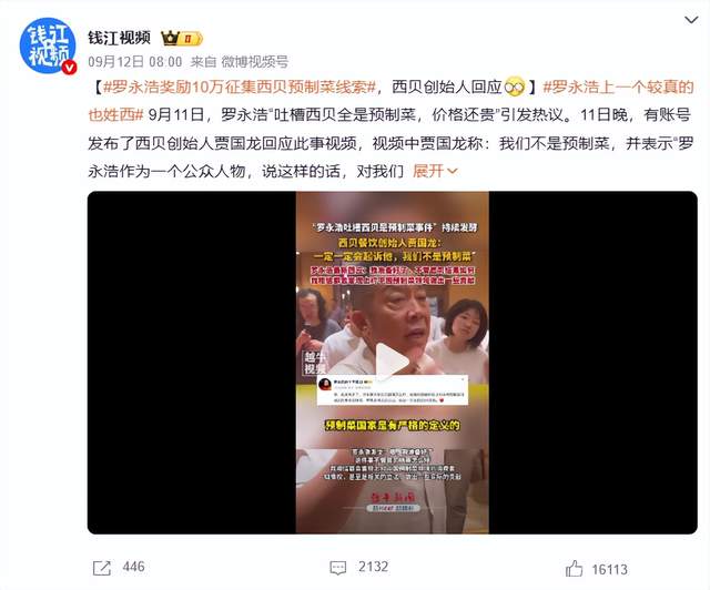 贾国龙回应后,罗永浩连发多条微博表达观点,“罗永浩悬赏10万元征集西贝使用预制菜线索”这一网络名场面也由此诞生。