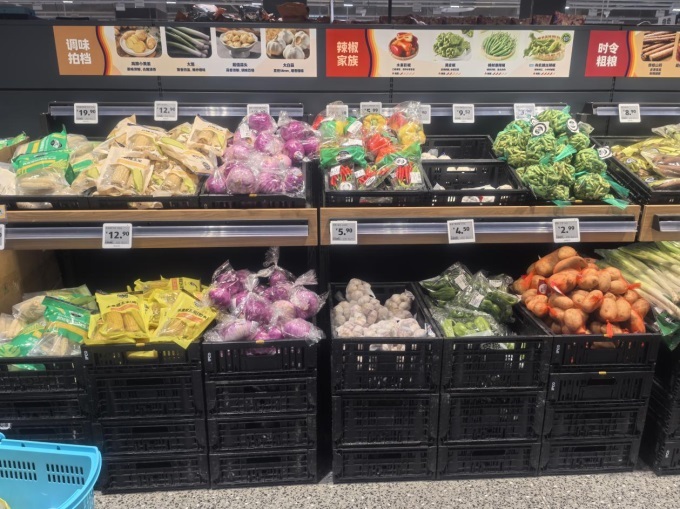 比如,彩椒等小众蔬菜集中在一个周转筐中售卖,既节省了空间,又降低了损耗。这类商品通常按“小袋”或“份”订货和销售,既能控制损耗,又能满足家庭小份量购买的需求。
