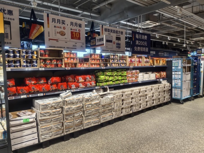 比如,在方便速食品类中,奥乐齐主打红烧牛肉面、酸菜面等国民口味的基本款商品(PB商品),同时引入满小饱肥汁米线、李子柒螺蛳粉等市场畅销的NB爆款作为补充。这种“PB + NB”组合策略,既保证了价格优势,又满足了消费者对商品多样性的需求。