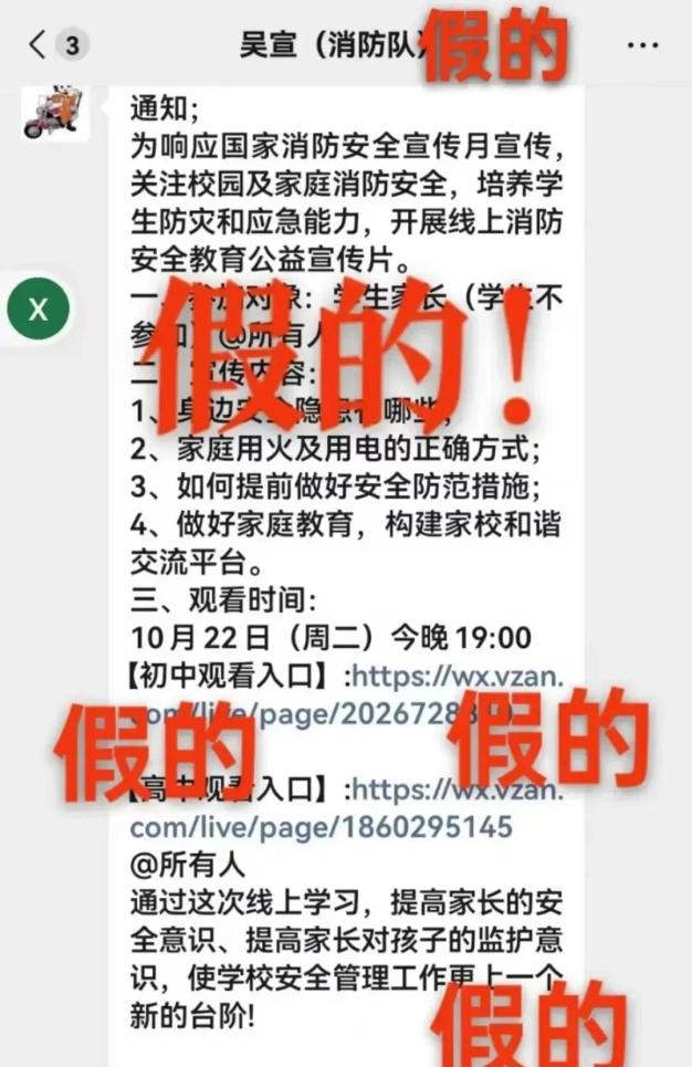 2024年10月22日,贵州安顺消防接到群众反映,有不法分子冒充消防部门人员通过微信联系各学校主要负责人,发送链接声称开展消防安全学习教育。好在群众心思敏锐及时发现问题并举报核实,避免了一场骗局的上演。