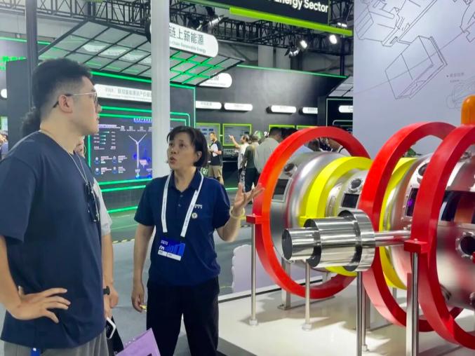 在“核聚变”展台前,宣讲团成员沉着自信地为中外来宾讲解。他们把复杂的“可控核聚变”原理形象地比喻成“人造小太阳”,用通俗易懂的语言和满满的热情,将尖端科技知识缓缓道来。