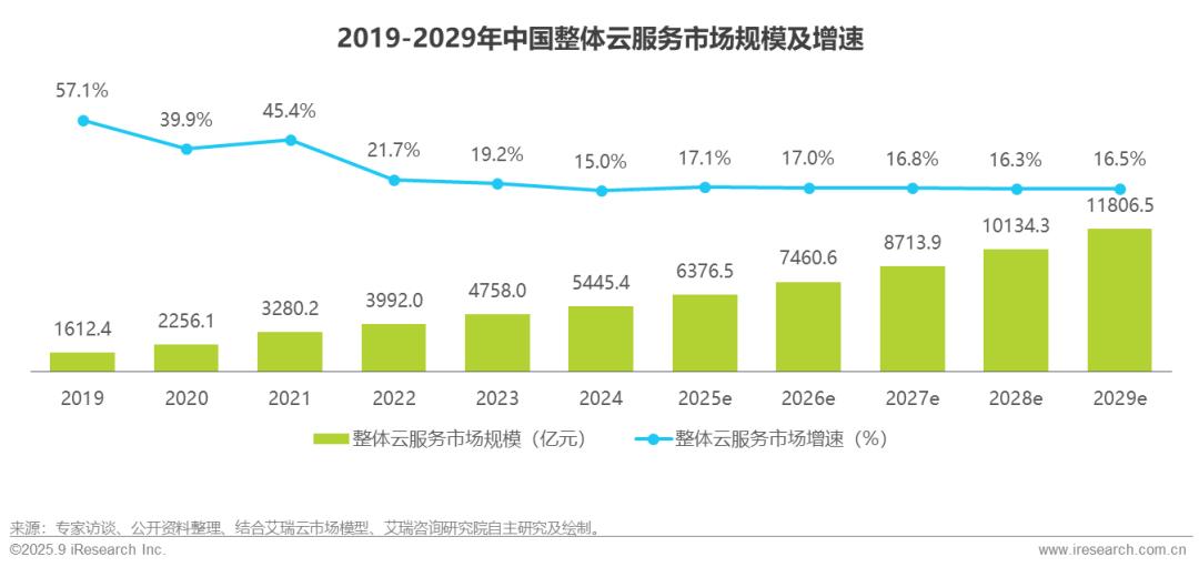市场概览:2024年中国整体云服务市场规模5445.4亿元,增速15%。人工智能发展带动云基础设施和云能力平台升级,是市场增长关键因素。