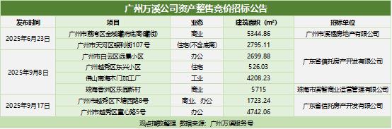 据观点新媒体统计,截至目前,广州万溪今年已累计对旗下8项资产启动整售竞价招标。